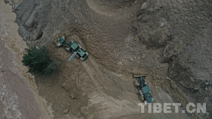 圖為該支隊救援官兵正在對川藏線怒江溝泥石流災(zāi)害進(jìn)行搶通