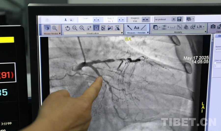 圖為陰赪茜趕赴阿壩州人民醫(yī)院手術(shù)救治急性心?;颊撸聊簧巷@示出患者心臟血管多處問(wèn)題嚴(yán)重 攝影:劉莉