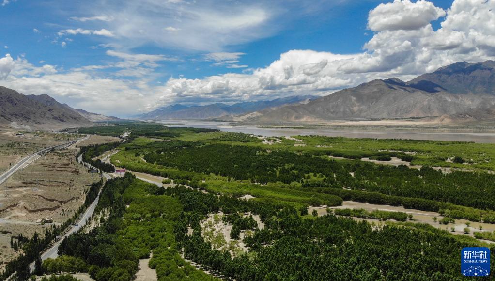 雅魯藏布江山南段防護(hù)林(2020年6月27日攝,無人機(jī)照片)。新華社記者 晉美多吉 攝