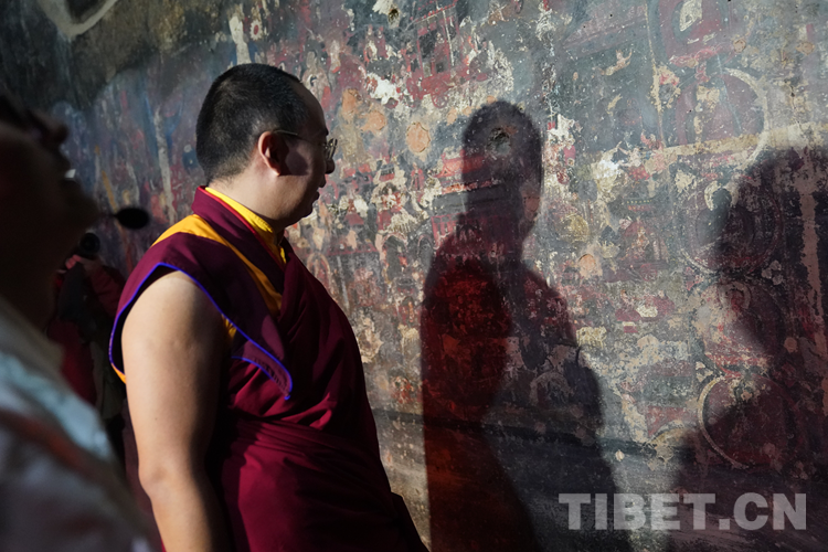 圖為班禪在法王殿內(nèi)觀摩古老壁畫(huà) 攝影:王淑