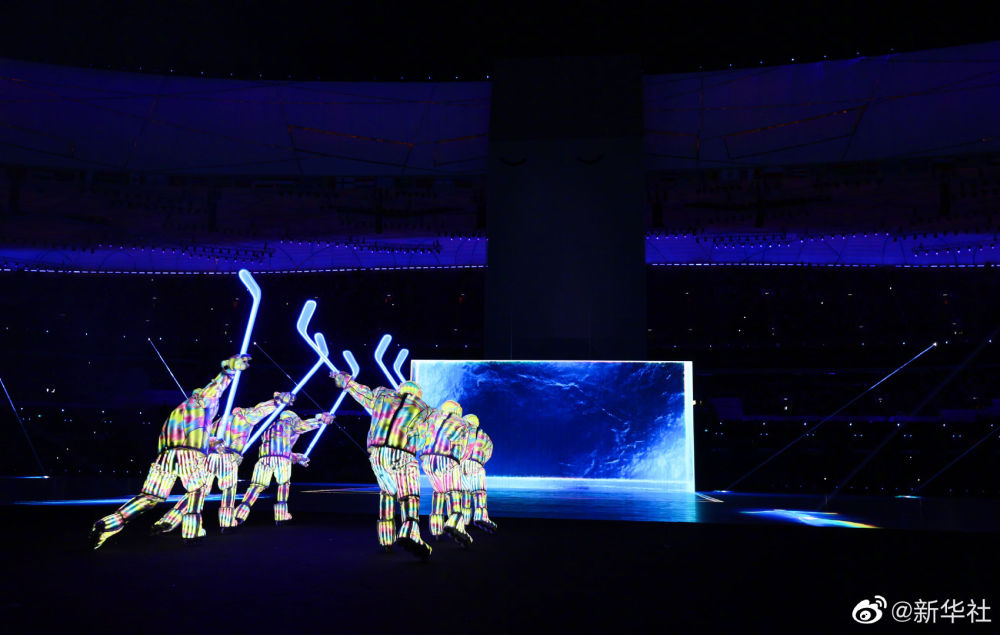 展示整個冬奧會的歷史。一方巨大的水從冰面中升起,凝固成冰。過往23屆冬奧舉辦城市的歷史,隨著環(huán)繞全場的24道“激光刻刀”的雕琢,閃回其上,最終定格為“2022中國北京”。