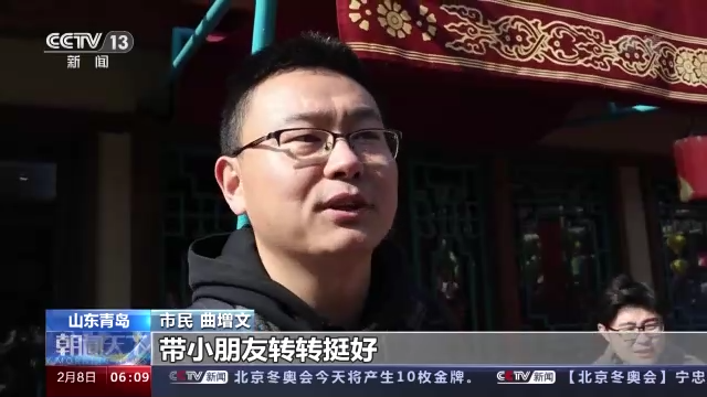 山東青島市民 曲增文:草莓采摘、滑雪、小吃、廟會(huì),帶小朋友轉(zhuǎn)轉(zhuǎn)挺好。有年味兒了,年味兒就比在家里濃很多了。