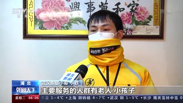 湖北武漢跑腿小哥 小舒:我們提供了有幫買(mǎi)、幫送和幫取,主要服務(wù)的人群有老人、小孩子,特別是老人這方面比較多。