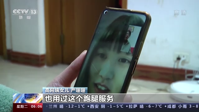 高阿姨女兒 嚴(yán)珊珊:她在手機(jī)上只用App點(diǎn)一下,她就不用彎腰了,因?yàn)橹拔以趪?guó)內(nèi)也用過(guò)這個(gè)跑腿服務(wù),挺好的,想著我又不在國(guó)內(nèi),想著用一下,就正好讓小哥教一下我媽媽怎么用。