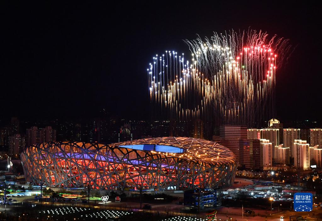 2月4日,第二十四屆冬季奧林匹克運動會開幕式在北京國家體育場舉行。這是當晚的焰火表演。新華社記者 李鑫 攝