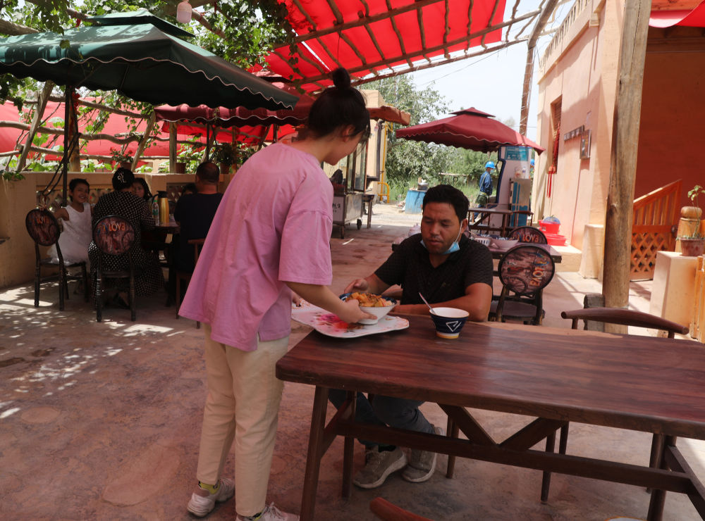 托萬(wàn)特根拉村第一書(shū)記阿卜杜如斯力·圖爾蓀介紹,實(shí)現(xiàn)脫貧后,現(xiàn)在村里水、電、路、氣、通信、安居房甚至下水管網(wǎng)一應(yīng)俱全,搞鄉(xiāng)村旅游的硬件條件都具備了。2020年村里只有7家商戶,去年村里開(kāi)始發(fā)展旅游后,服裝店、餐館、美容店、農(nóng)家樂(lè)、采摘園等已有52家商戶,30%還是吸引外地人來(lái)開(kāi)的。