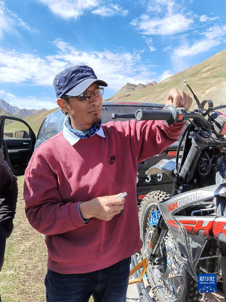 管護(hù)員強巴出發(fā)前調(diào)試巡邏用摩托車。(受訪者提供)