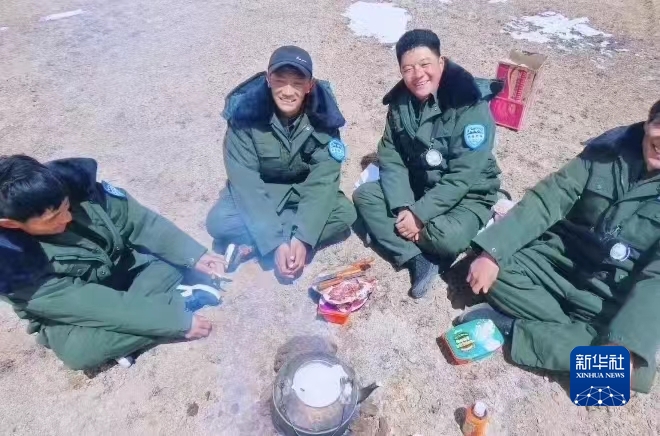雙湖縣管護(hù)員在巡邏時用餐。(受訪者提供)
