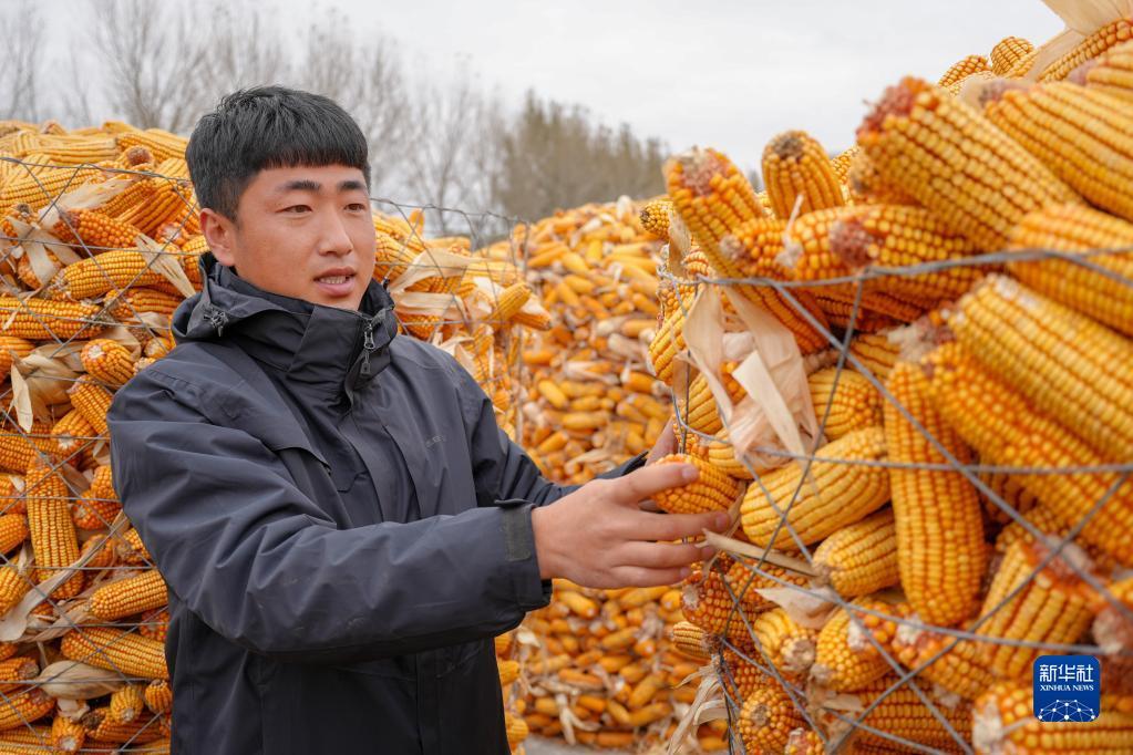 10月17日,在吉林省梨樹縣梨樹鎮(zhèn)八里廟村一家農(nóng)機(jī)農(nóng)民專業(yè)合作社,負(fù)責(zé)人馬云秋在整理玉米。新華社發(fā)(程禹然 攝)