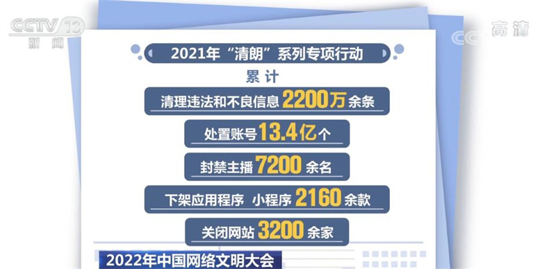 中國網(wǎng)絡(luò)文明大會|2021年“清朗”系列專項行動處置賬號13.4億個