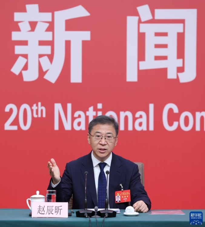 10月17日,中國(guó)共產(chǎn)黨第二十次全國(guó)代表大會(huì)新聞中心舉行記者招待會(huì),請(qǐng)國(guó)家發(fā)展和改革委員會(huì)黨組成員、副主任趙辰昕,國(guó)家發(fā)展和改革委員會(huì)黨組成員、國(guó)家糧食和物資儲(chǔ)備局黨組書記、局長(zhǎng)叢亮,國(guó)家能源局黨組成員、副局長(zhǎng)任京東介紹貫徹新發(fā)展理念、構(gòu)建新發(fā)展格局、推動(dòng)高質(zhì)量發(fā)展,以中國(guó)式現(xiàn)代化全面推進(jìn)中華民族偉大復(fù)興有關(guān)情況,并回答記者提問。這是趙辰昕在記者招待會(huì)上。新華社記者 張玉薇 攝 圖片來源:新華網(wǎng)
