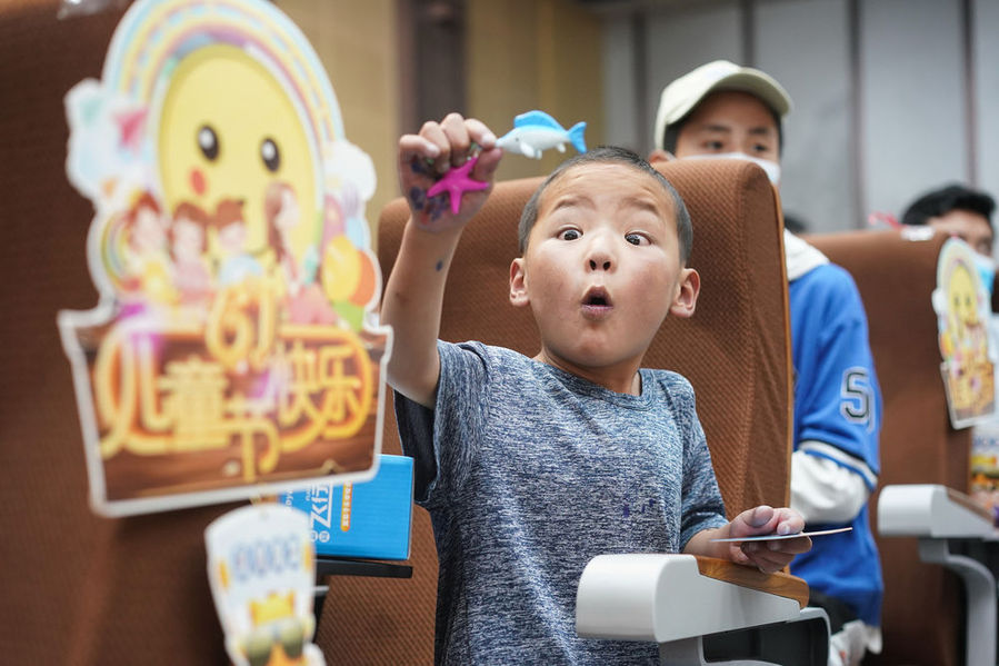 6月1日,在南京醫(yī)科大學第二附屬醫(yī)院,小患者在欣賞玩具。新華每日電訊記者季春鵬攝