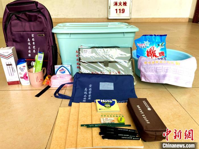資料圖為京藏宏志班學(xué)生發(fā)放的學(xué)習(xí)、生活用品。北京援藏供圖