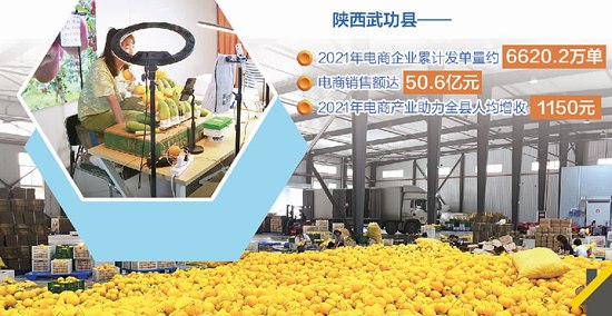 目前,在武功直接與電商相關(guān)的人員已有萬人,帶動(dòng)就業(yè)數(shù)萬人。王雷說,對(duì)于有30多萬常住人口的西部縣城而言,以農(nóng)產(chǎn)品精深加工為重點(diǎn)的電商物流已成為“首位產(chǎn)業(yè)”,2021年電商產(chǎn)業(yè)助力全縣人均增收1150元。