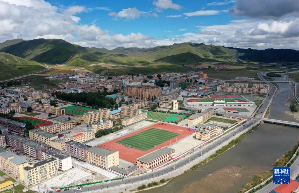 這是甘肅省甘南藏族自治州碌曲縣縣城(無人機(jī)照片,2021年8月30日攝)。新華社記者 杜哲宇 攝
