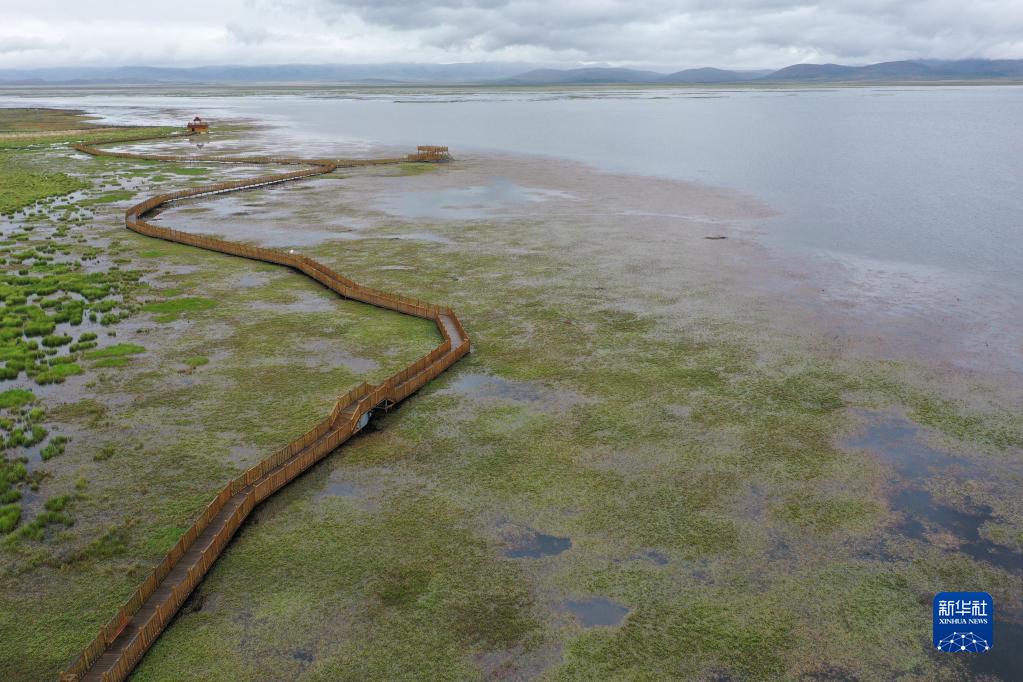 這是在甘肅省甘南藏族自治州碌曲縣拍攝的尕海湖(無人機(jī)照片,2021年6月2日攝)。新華社記者 杜哲宇 攝