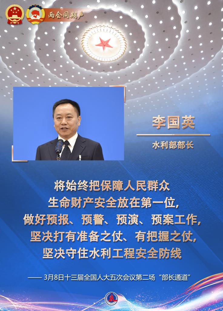 水旱災(zāi)害關(guān)乎人民生命財(cái)產(chǎn)安全。今年夏汛情勢如何?怎樣全面提升國家水安全保障能力?國家水網(wǎng)重大工程如何實(shí)施?8日的十三屆全國人大五次會議“部長通道”上,水利部部長李國英回應(yīng)了社會關(guān)切熱點(diǎn)。