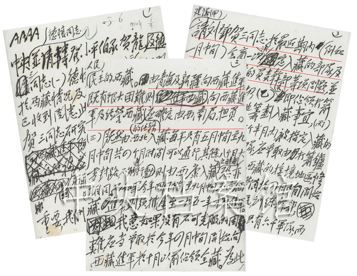 圖為1950年1月2日,毛澤東關(guān)于四月中旬進軍西藏問題的建議給中央和彭德懷、鄧小平、劉伯承、賀龍的電報(節(jié)錄)。圖片來源:中央檔案館