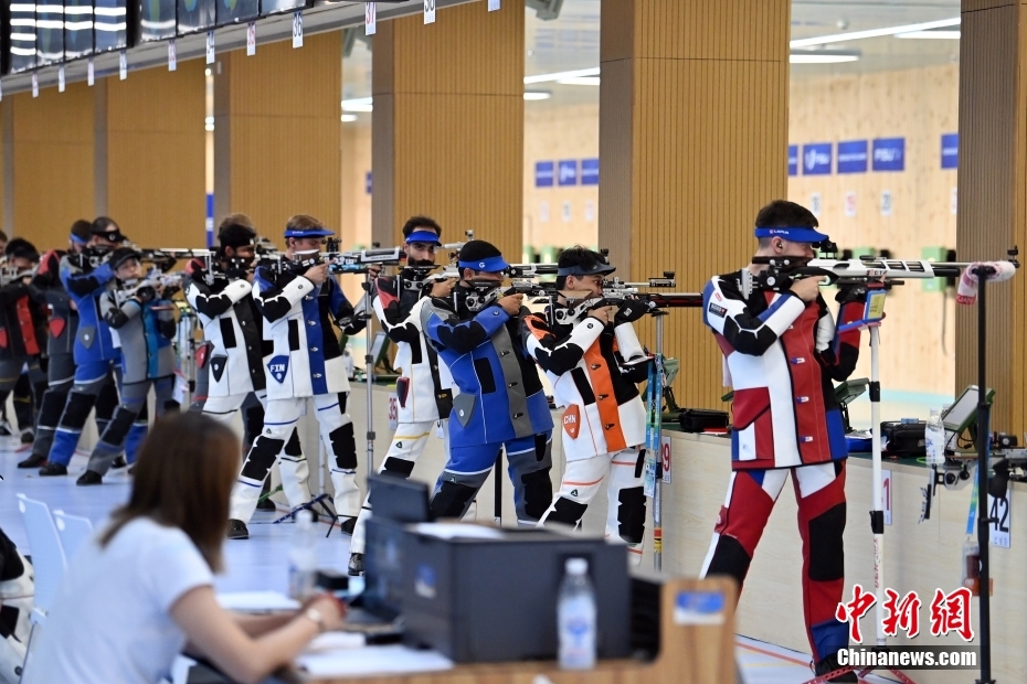 7月31日,第31屆世界大學(xué)生夏季運(yùn)動會男子10米氣步槍團(tuán)體決賽在成都市射擊運(yùn)動學(xué)校舉行,印度隊、中國隊、哈薩克斯坦隊分獲冠亞季軍。圖為男子10米氣步槍團(tuán)體決賽比賽現(xiàn)場。中新社記者 九美旦增 攝