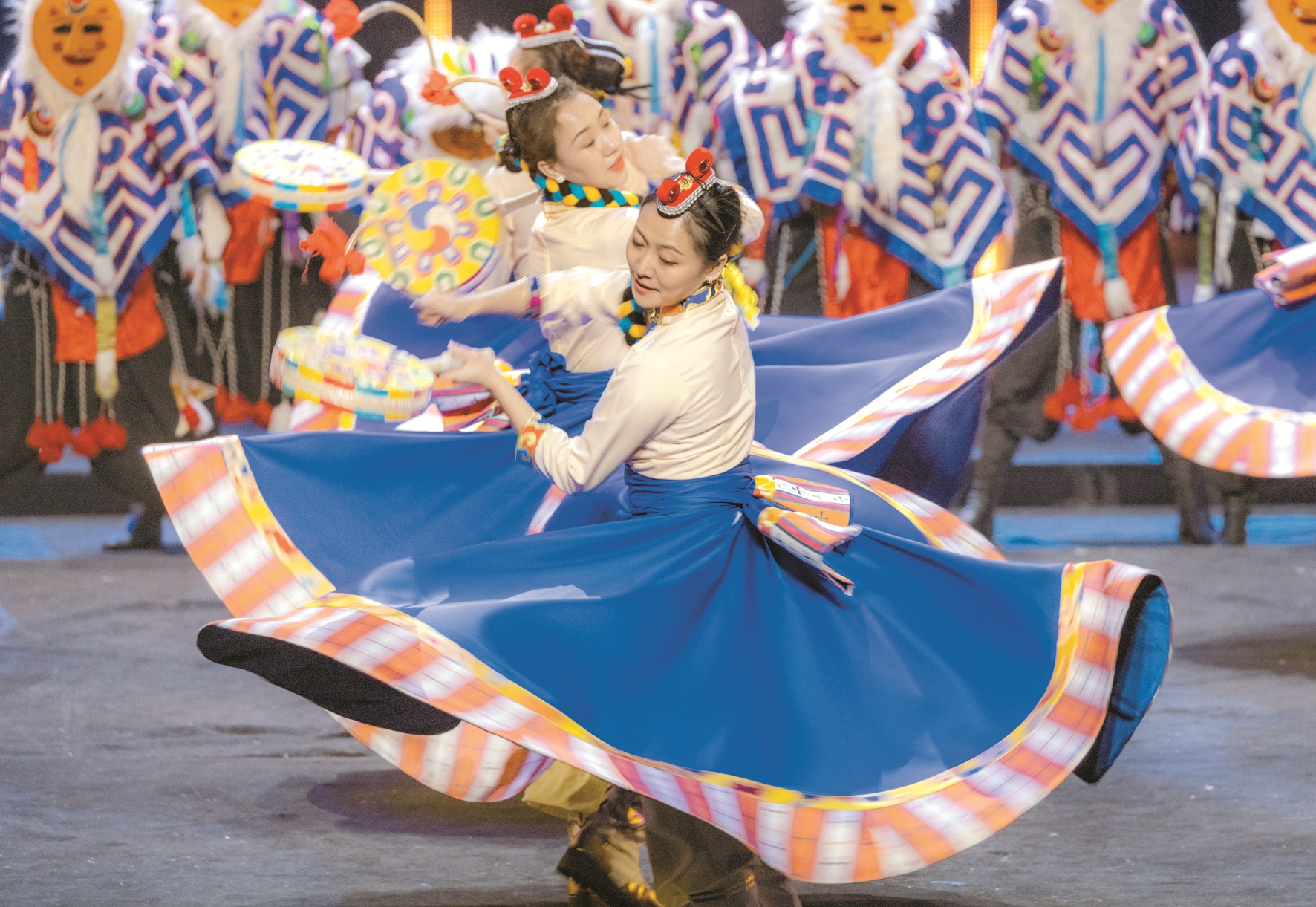 演出在開場歌舞《新年 扎西德勒》中拉開帷幕;《扎西熱巴》《豐收的喜悅》等文藝交往交流交融成果的演出,展現(xiàn)了中華優(yōu)秀傳統(tǒng)文化的博大精深和與時(shí)俱進(jìn);“甜野男孩”丁真帶來的《天空下的溫暖》治愈人心,烏蘭圖雅傾情呈現(xiàn)《拉薩我的家》,次仁桑珠的《歡樂幸福年》喜慶吉祥,雜技《劈風(fēng)斬浪》剛?cè)岵?jì),驚艷眾人;《弘》《羌塘魂》《熱堆諧欽》《熱巴多吉》等節(jié)目接連登場,讓觀眾享受到極富西藏特色歌舞的同時(shí),也感受到西藏人民的深情厚誼?,F(xiàn)場更有在江蘇就業(yè)的拉薩籍高校畢業(yè)生和南通西藏民族中學(xué)的孩子們現(xiàn)身,在千里之外聽到鄉(xiāng)音。17個(gè)節(jié)目全面展現(xiàn)了新時(shí)代拉薩新氣象、新面貌,舞美變幻、光效爛漫?,F(xiàn)場掌聲不斷,氣氛熱烈祥和。