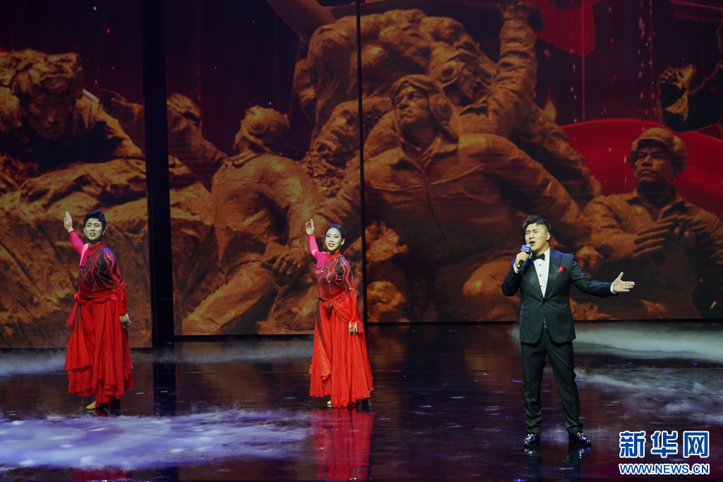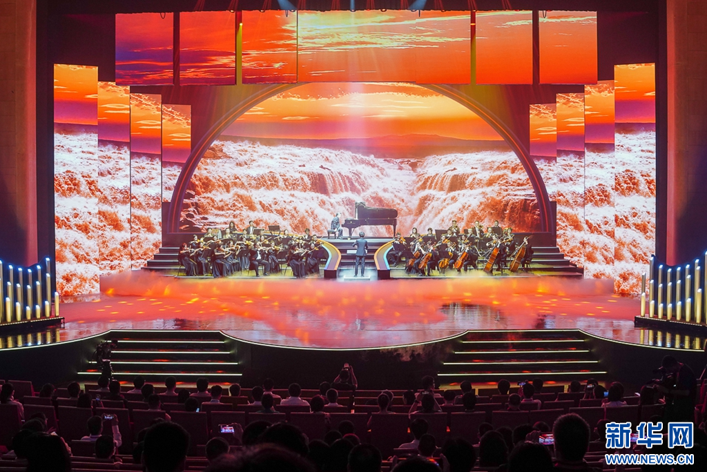 這是7月17日晚上拍攝到的晚會(huì)序幕,鋼琴協(xié)奏曲《黃河》第四樂(lè)章:保衛(wèi)黃河。新華網(wǎng) 肖和勇 攝