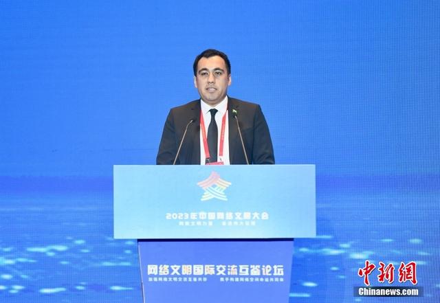7月18日,2023年中國(guó)網(wǎng)絡(luò)文明大會(huì)網(wǎng)絡(luò)文明國(guó)際交流互鑒論壇在廈門舉辦。中外嘉賓圍繞加強(qiáng)網(wǎng)絡(luò)文明交流、互鑒、共存等話題展開探討。圖為中國(guó)石油大學(xué)(北京)土庫(kù)曼斯坦籍來(lái)華留學(xué)生若賀曼作主題演講。中新社記者 王東明 攝