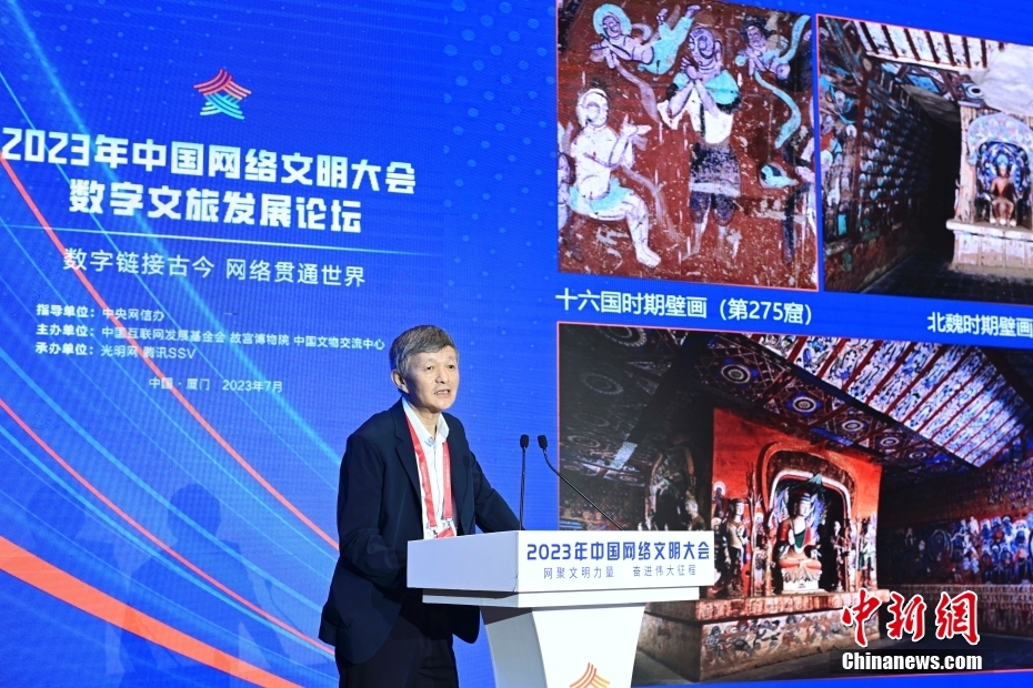7月19日,2023年中國網(wǎng)絡(luò)文明大會(huì)數(shù)字文旅發(fā)展論壇在福建省廈門市舉辦。論壇以“數(shù)字鏈接古今 網(wǎng)絡(luò)貫通世界”為主題,邀請(qǐng)國內(nèi)外數(shù)字化、文博考古、旅游等領(lǐng)域?qū)<液痛砉餐剿鞴偶奈镌跀?shù)字時(shí)代的創(chuàng)造性轉(zhuǎn)化和創(chuàng)新性發(fā)展,以及在數(shù)字技術(shù)賦能下,文旅產(chǎn)業(yè)如何實(shí)現(xiàn)高質(zhì)量發(fā)展。圖為論壇現(xiàn)場(chǎng)。中新社記者 田雨昊 攝