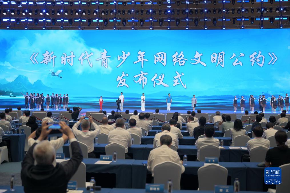 7月18日,2023年中國網(wǎng)絡(luò)文明大會主論壇發(fā)布《新時代青少年網(wǎng)絡(luò)文明公約》。新華社記者林善傳攝