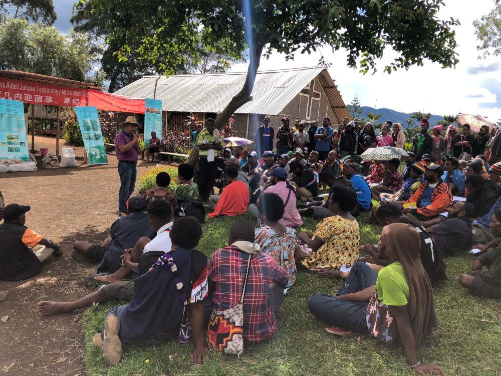 2020年12月15日,中國專家在巴布亞新幾內(nèi)亞東高地省中國援助巴新菌草和旱稻技術項目第9期培訓班上授課。