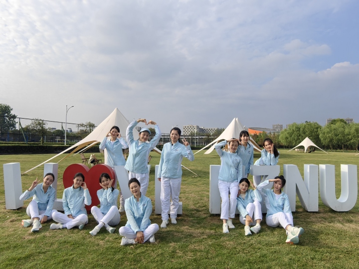 12人小分隊(duì)在杭州師范大學(xué)排練時(shí)合影留戀。受訪者供圖