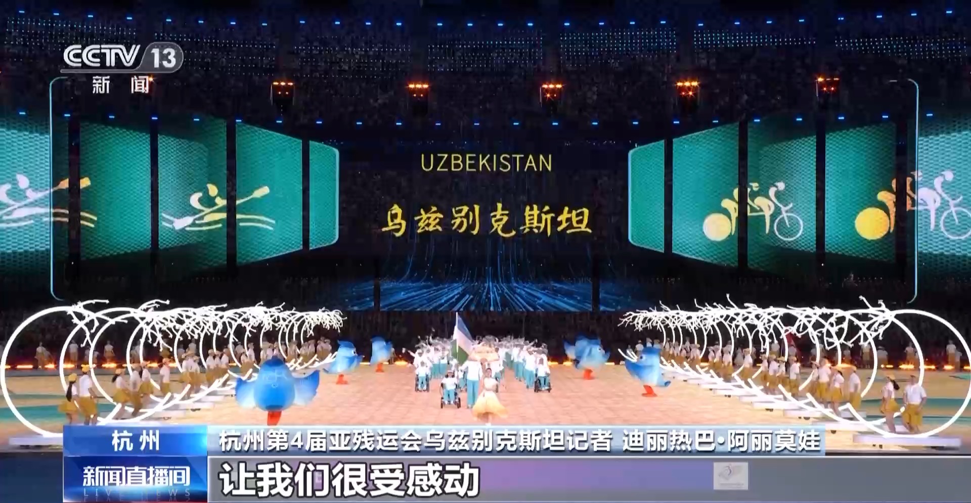 杭州第4屆亞殘運會烏茲別克斯坦記者 迪麗熱巴 阿麗莫娃:當我們國家的代表團入場時受到了全場熱情的歡迎,讓我們很受感動,烏茲別克斯坦和中國是最好的朋友。我們的總統(tǒng)最近在北京參加了“一帶一路”國際合作高峰論壇。我們與中國有很多的合作項目,我相信我們兩國的友誼和在各個領(lǐng)域的合作未來將一直持續(xù)下去。