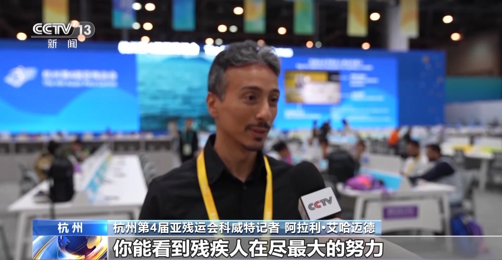 杭州第4屆亞殘運會科威特記者 阿拉利 艾哈邁德:非常感人,你能看到殘疾人在盡最大努力完成所有事情,也能看到殘疾人和健全人之間強有力的聯(lián)系,他們像一個大家庭中的兄弟姐妹一樣互相支持。此外,開幕式呈現(xiàn)的顏色非常溫暖、好看,跟我們在秋天的杭州看到的景色一樣。桂花的香味淡淡的,很清新、很好聞,我覺得這種花香在對我們表示歡迎,好像在說,這里氣候宜人,環(huán)境優(yōu)美,歡迎來玩。