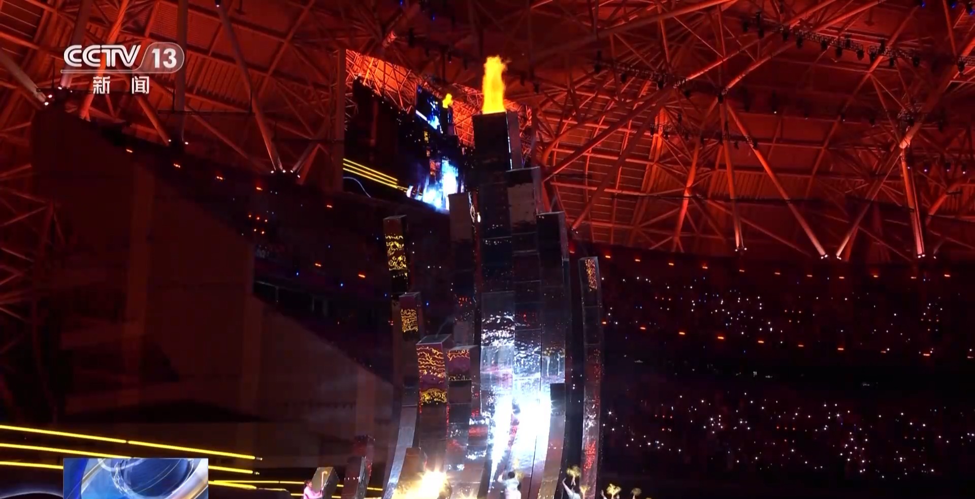 開幕式尾聲,吉祥物“飛飛”與火炬手一起借助科技的力量點燃主火炬,將全場的氛圍推向最高潮的同時,也開啟了殘疾人運動員們逐夢亞殘運賽場的旅程。