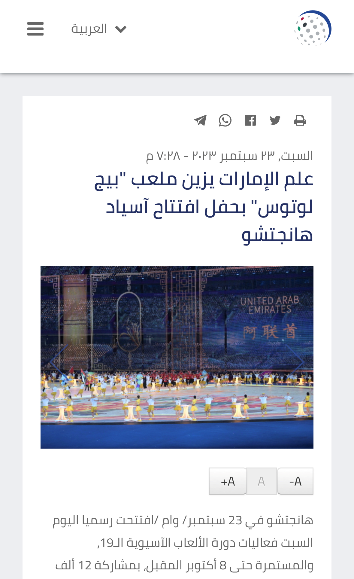 同樣在23日,阿聯(lián)酋國家通訊社(Emirates News Agency)發(fā)表題為《阿聯(lián)酋國旗點(diǎn)綴杭州亞運(yùn)會(huì)“大蓮花”體育場》的報(bào)道。報(bào)道稱,中國國家主席習(xí)近平當(dāng)晚宣布了亞運(yùn)會(huì)的開幕。杭州亞運(yùn)會(huì)的開幕式精彩紛呈,突出展現(xiàn)了主辦國的文化遺產(chǎn),重點(diǎn)關(guān)注可持續(xù)發(fā)展和環(huán)境保護(hù)領(lǐng)域的實(shí)踐,同時(shí)凸顯古代文明獨(dú)有的特征。杭州亞運(yùn)會(huì)的舉辦正是收獲果實(shí)、收獲喜悅的時(shí)刻,東道主將與亞洲各國來賓共同分享。