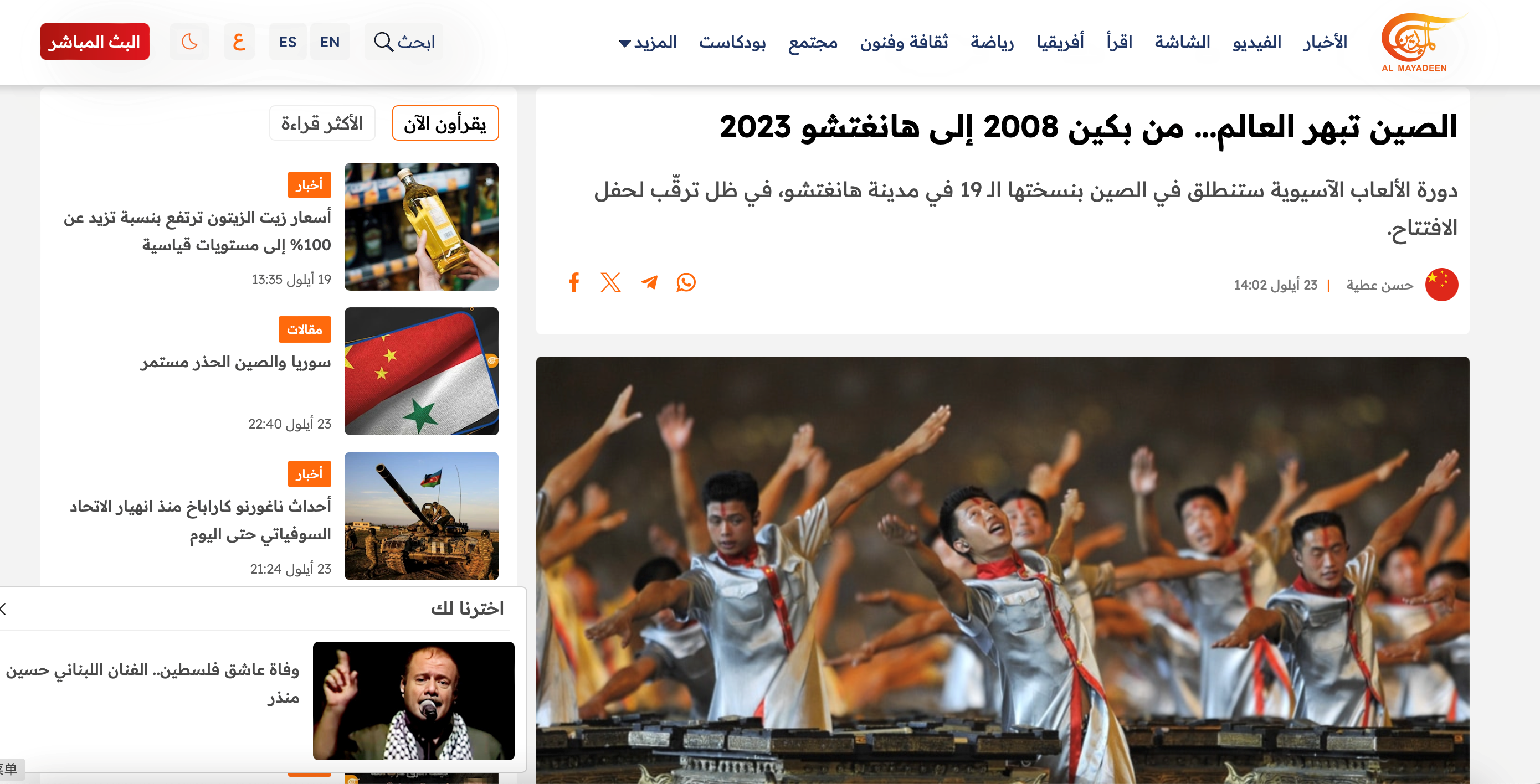 黎巴嫩新銳媒體邁亞丁(Al Mayadeen)23日在其網(wǎng)站上發(fā)表題為《從2008年的北京到2023的杭州,中國讓世界目不暇接》的評(píng)論文章,文章回溯了2008年北京奧運(yùn)會(huì)開幕式的盛況,向觀眾全面介紹杭州亞運(yùn)會(huì)開幕式的準(zhǔn)備情況及亮點(diǎn)看點(diǎn)。24日,邁亞丁刊發(fā)評(píng)論員文章,稱杭州亞運(yùn)會(huì)開幕式是一場內(nèi)涵豐富、信息量巨大的藝術(shù)盛典。文章引用了中國名言“上有天堂,下有蘇杭”,足見杭州這座城市的歷史價(jià)值。評(píng)論還認(rèn)為,如今的杭州是中國最具活力的城市之一,杭州的產(chǎn)業(yè)發(fā)展隨著時(shí)代變遷而變化,但始終立于創(chuàng)新的前沿。