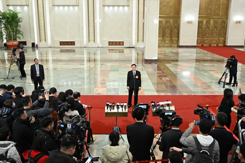 3月5日,第十四屆全國人民代表大會第二次會議首場“部長通道”集中采訪活動在北京人民大會堂舉行。新華社記者 李鑫 攝