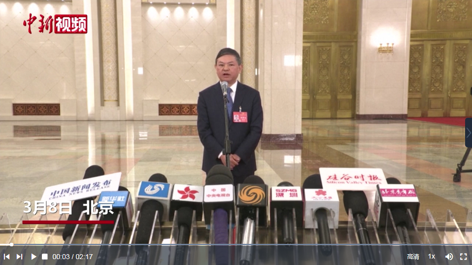 3月8日,十四屆全國人大二次會議第二場“部長通道”在人民大會堂舉行,生態(tài)環(huán)境部部長黃潤秋接受采訪。