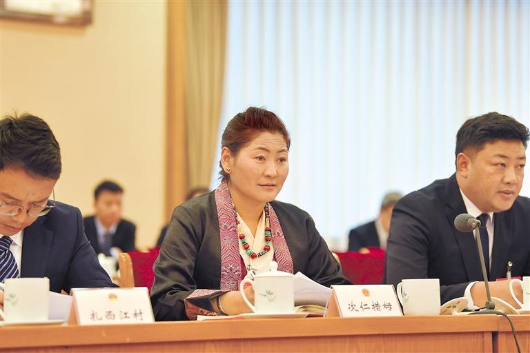 全國(guó)人大代表白瑪措在會(huì)上發(fā)言。記者 旦增西旦 攝