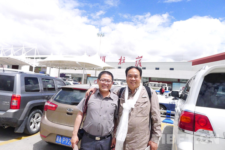 圖為時(shí)任中央人民廣播電臺(tái)、中國國際廣播電臺(tái)西藏記者站站長、現(xiàn)任中央廣播電視總臺(tái)西藏總站站長曾曉東到拉薩機(jī)場(chǎng)迎接。攝影 張?zhí)一?/p>