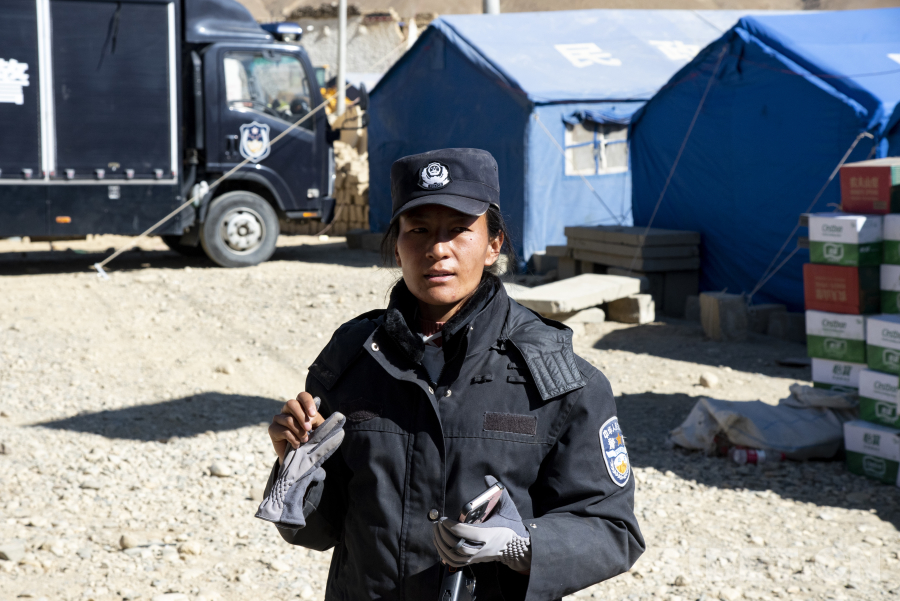 在嘎白村,有一位年齡最小的黨員名叫阿旺德金,去年剛剛大學(xué)畢業(yè)的她選擇到嘎白村成為一名科技振興專干。相較于塔杰書記、頓珠巴姆隊(duì)長(zhǎng)以及次仁玉珍來說,她的工作經(jīng)驗(yàn)尚不豐富,在大災(zāi)大難面前雖還不能獨(dú)當(dāng)一面,但在自己的崗位上兢兢業(yè)業(yè)。13日,嘎白村的村民正在從安置帳篷搬往活動(dòng)板房居住,阿旺德金在一戶又一戶的帳篷內(nèi)幫助受災(zāi)群眾收拾個(gè)人物品。