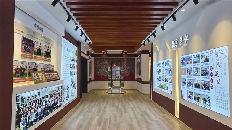 紅領(lǐng)巾講解員楚成白姆指著老照片介紹道:“這是學(xué)生當(dāng)時(shí)加入少先隊(duì)時(shí)的情景,這是學(xué)校成立時(shí)的教室畫面,這張是建校初期教師自編的教材圖片?!痹谏鲜兰o(jì)七八十年代,學(xué)校組織學(xué)生成立了腰鼓隊(duì)、舞蹈隊(duì)等,學(xué)生們經(jīng)常登上大型活動(dòng)的舞臺(tái),用精彩的文藝表演展現(xiàn)著青春風(fēng)采。