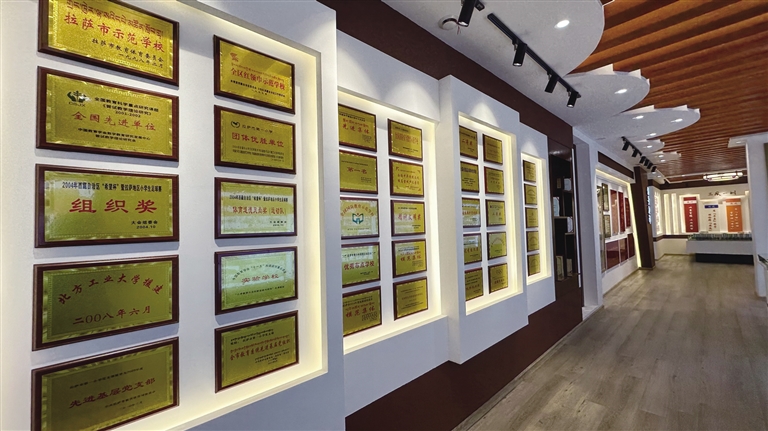 在校史館的圖片墻上,學(xué)校舉行“六一”文藝演出的照片吸引了記者的注意。從1985年羅布林卡黑白照片里孩子們歡快表演的身影,到上世紀(jì)90年代初宗角祿康公園彩色照片中孩子們慶祝“六一”國(guó)際兒童節(jié)的文藝表演,再到1992年至2012年間,學(xué)校舉辦慶祝“六一”國(guó)際兒童節(jié)文藝演出。20年間,學(xué)校進(jìn)一步豐富特色教育,設(shè)有管樂隊(duì)、民樂特長(zhǎng)班、手工特長(zhǎng)班、美術(shù)特長(zhǎng)班等,并組織管樂隊(duì)學(xué)生在布達(dá)拉宮廣場(chǎng)參加各類活動(dòng),為學(xué)生全面發(fā)展搭建起更廣闊的展示平臺(tái)。